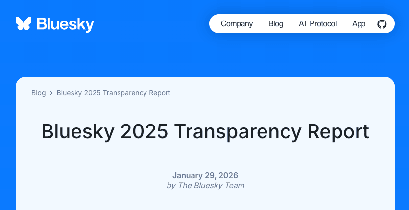 Bluesky Directory Newsletter Bluesky currently has over 42.2M users320K starter packs, 105K feeds & 300K lists Bluesky 2025 Transparency Report Bluesky published a transparency report that provides data and details about the progress the platform made last year. Read report:https://bsky.social/about/blog/01-29-2026-transparency-report-2025 Skylight grows as TikTok US sale is finalized Read the TechCrunch coverage:https://bsky.app/profile/skylight.social/post/3mde3js4vhc2e Find out more about...